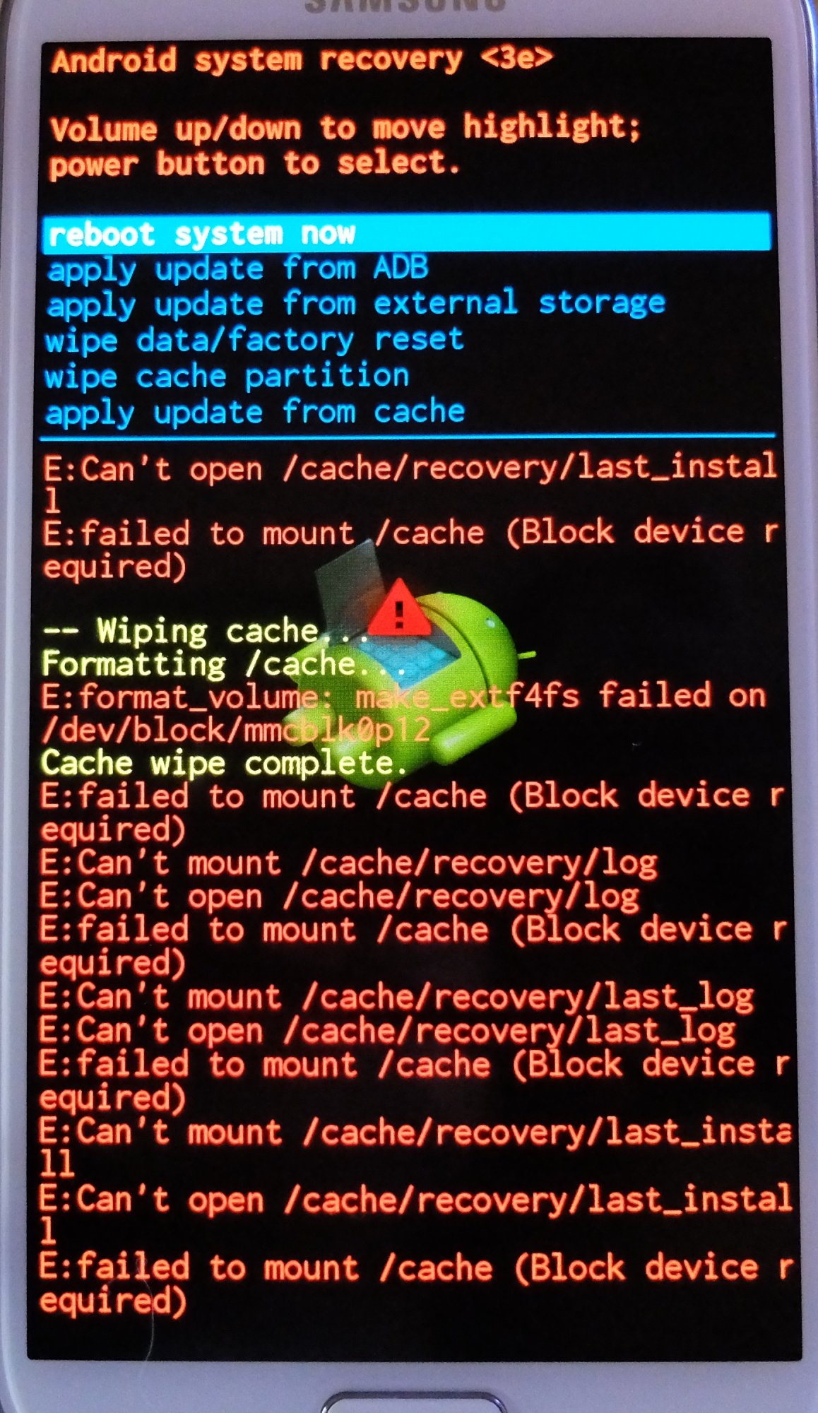 Hi, i have this box, r329q_v8.0 rk3228a and when you turn on the word android and the following the 7 lines: Galaxy s7 wenn ich ein wipe cache mache kommt die meldung in rot e: I did wipe the cache partition, then chose reboot system now and it got. E:failed to mount /cache (no such file or directory). When the cache partition on your android device gets corrupted so much such that the system can no longer mount it, your device will boot and . If your power button is working correctly then perform a soft reset . · once you are in . In order to fix failed to mount cache issue, you have to go to the recovery menu, mount the system, and then clear the cache again. Hawker android expert · 1. Failed to mount cache invalid argument · in order to remove this error, you need to boot into the recovery menu of your phone. Take out your battery then replace it. The wipe cache partition, wipe data/factory reset, mount/system, etc. Würde ich dann nicht ins ?bootmenü?